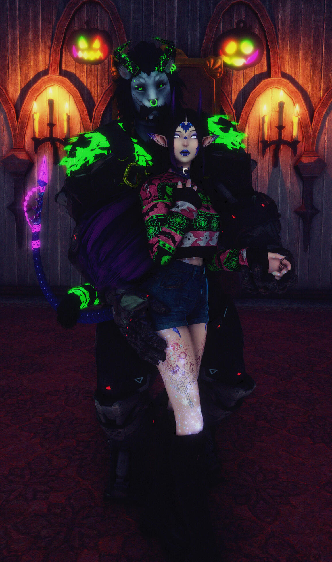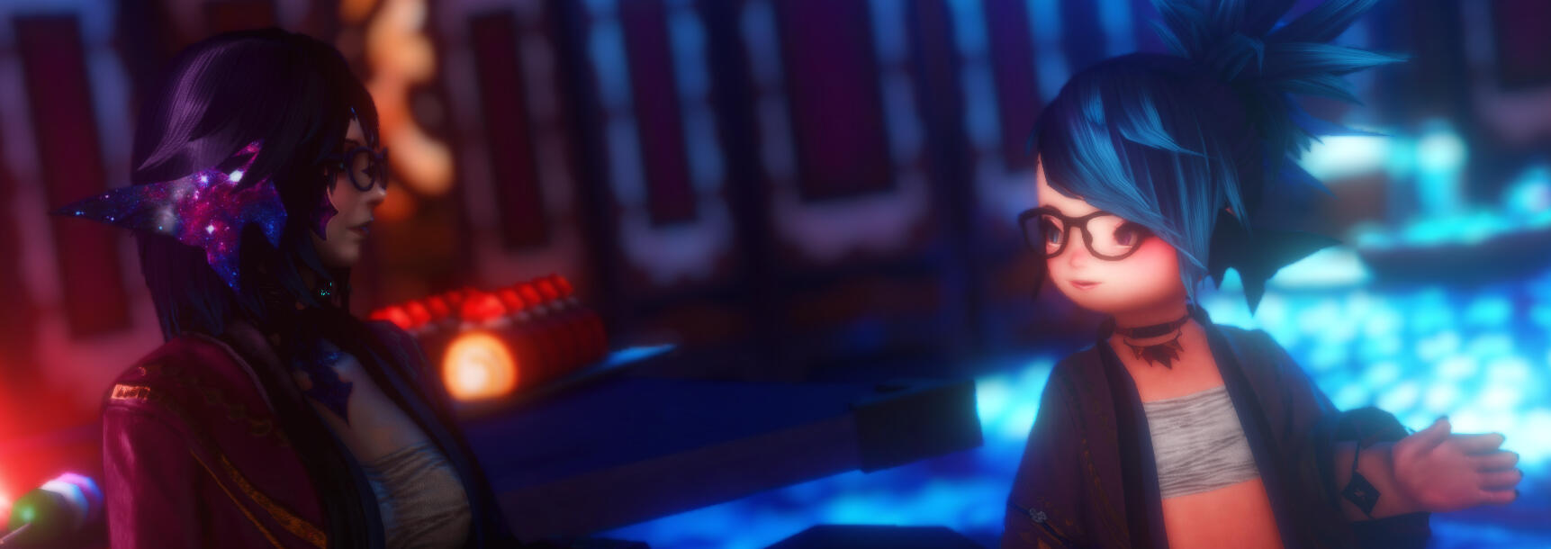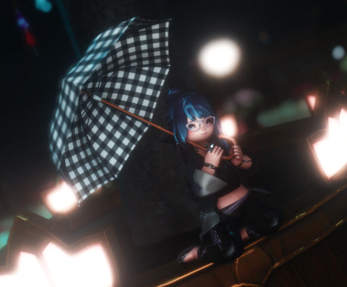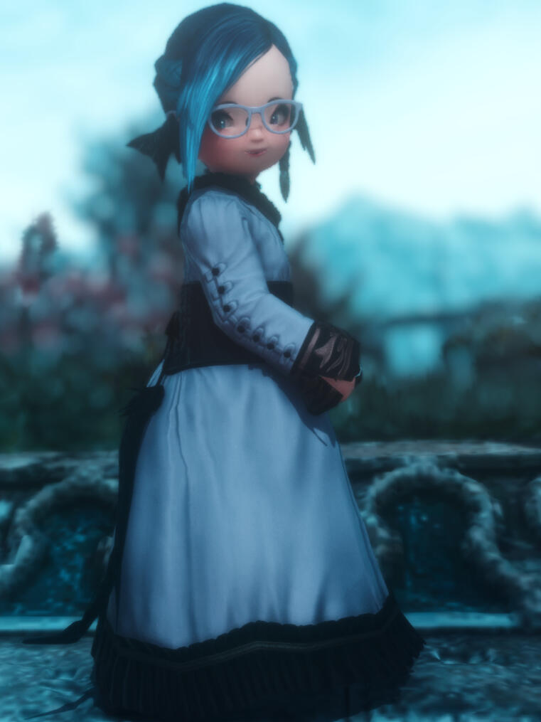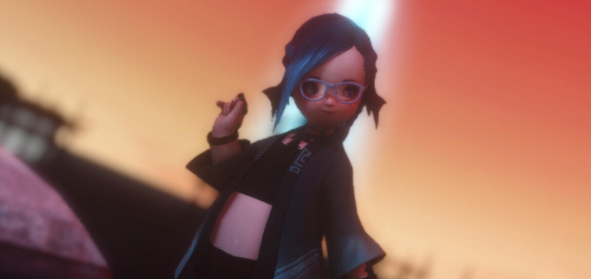 Due to a freak accident by her father's pet assistant, she was turned from a 9 month old baby to a fully developed 19 year old with all the wisdom from both parents combined. Due to the potions involved, she was changed from an Au'ra baby to a Lalafell with horns and a tail like her mother. Eventually she found her father and made him turn her back, so he handed her a potion and fled, only for her to realize that he had given her the wrong potion, the potion he gave turned her into Lalafell instead. To this day with the help from her husband she has been found wandering tracking her father down.