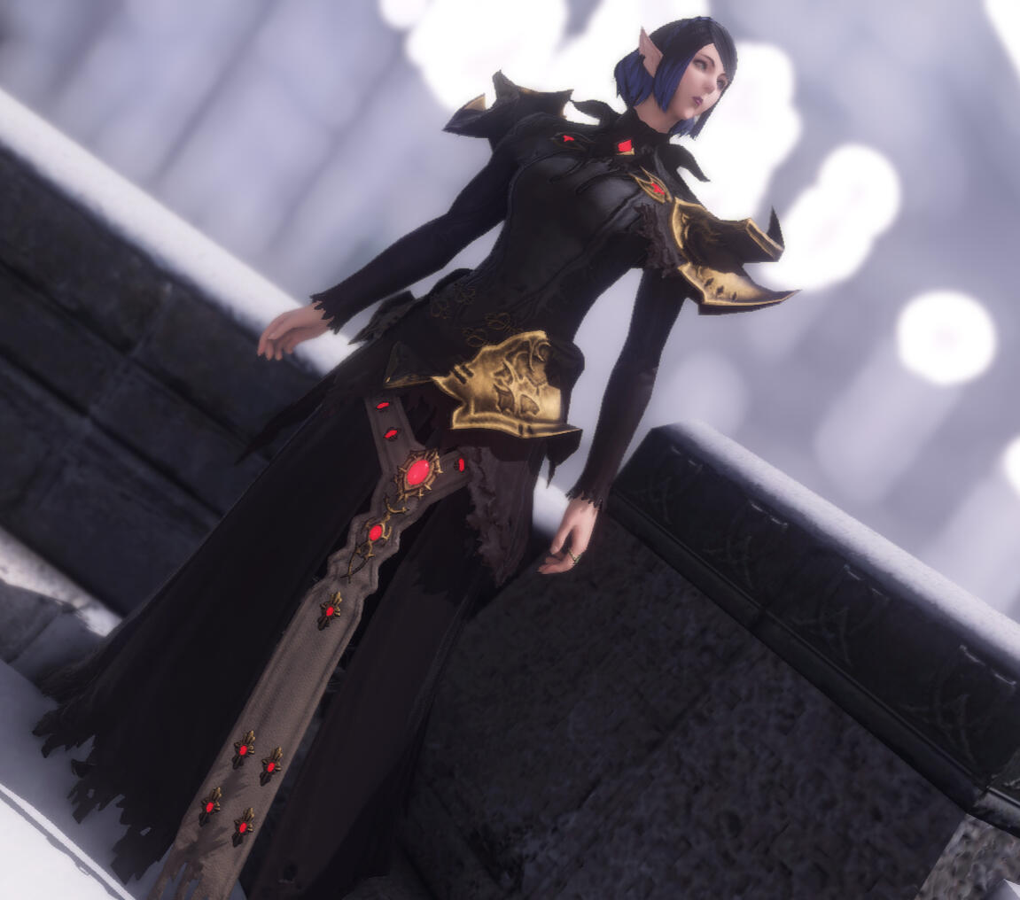 She was born in the snowy Ishgard region, which she calls home. Her Father was an Elezen Lord and a secret heretic, and her Mother was a Xaela from the Tribe of Orl. Her Mother was stolen away by her Father before the Ishgardians massacred her tribe in Coerthas and kept her hidden in his manor.
