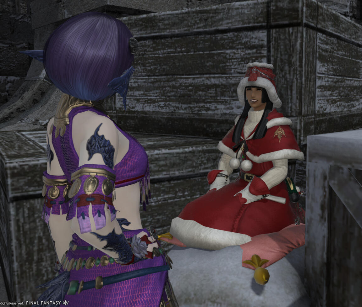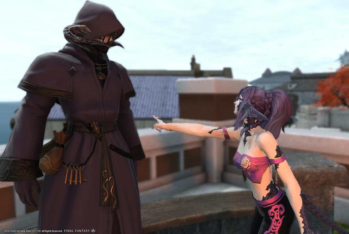Place of Business: Empyreum, but wanders the world, can often been seen in Ishgard roaming the the streets, and in Ul'dah, leaning on a railing in the Quicksands.